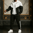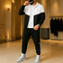 This set includes a zip-up jacket and matching joggers, crafted from soft yet durable fabric. The dual-tone design adds a bold, elevated streetwear touch while keeping the fit clean and comfortable.