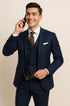 The Navy Blue Three-Piece Suit solves these issues with tailored precision, lightweight comfort, and a timeless aesthetic designed for today’s gentleman.
