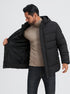Made from durable polyester with a soft thermal inner lining, this coat provides dependable warmth without sacrificing style. Its long silhouette, stand-up collar, and sleek zipper closure create a sharp, versatile look that transitions seamlessly from office to outdoor settings.